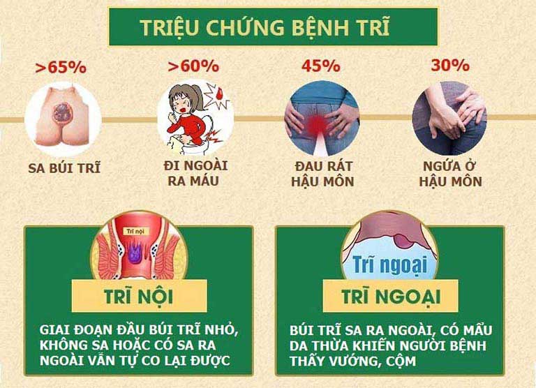 Triệu chứng trĩ thường phụ thuộc vào vị trí: