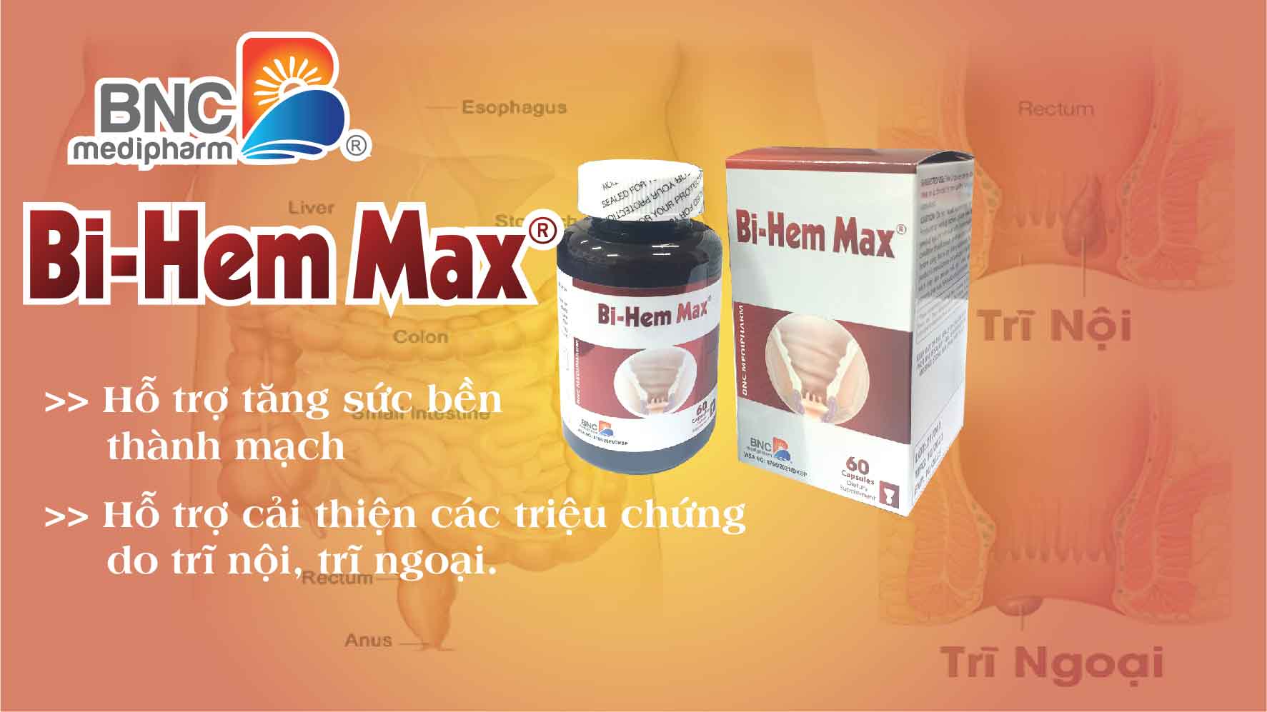 Bi-Hem Max - Hỗ trợ tăng sức bền thành mạch, hỗ trợ cải thiện các triệu chứng do trĩ nội, trĩ ngoại.