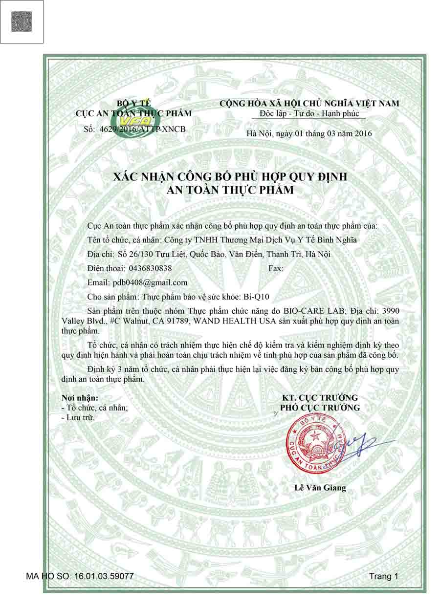 Bi-Q10 là một sản phẩm đáp ứng được nhu cầu cấp thiết trong công tác phòng chống, nâng cao sức khỏe tim mạch và chữa trị các bệnh lý tim mạch ngày càng gia tăng. Bi-Q10 được sản xuất bởi một trong những hãng dược phẩm uy tín hàng đầu của Mỹ: Wand Health USA và được Bộ Y Tế cấp phép cho BNC medipharm, Công Ty TNHH TM DV Y Tế Bình Nghĩa nhập khẩu trực tiếp và ký phân phối độc quyền tại Việt Nam.
