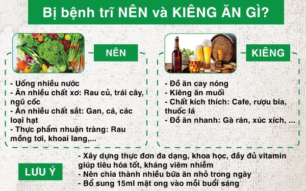 + Người trĩ ngoại cấp độ 1 cần thay đổi ăn uống, sinh hoạt phù hợp: