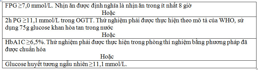 Bảng 1. Tiêu chuẩn chẩn đoán đái tháo đường (ADA, 2019 [1])