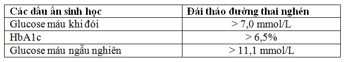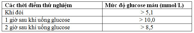 Nếu một hoặc nhiều hơn các thông số ở bảng 4 lớn hơn giá trị nêu trên là đái tháo đường thai nghén.