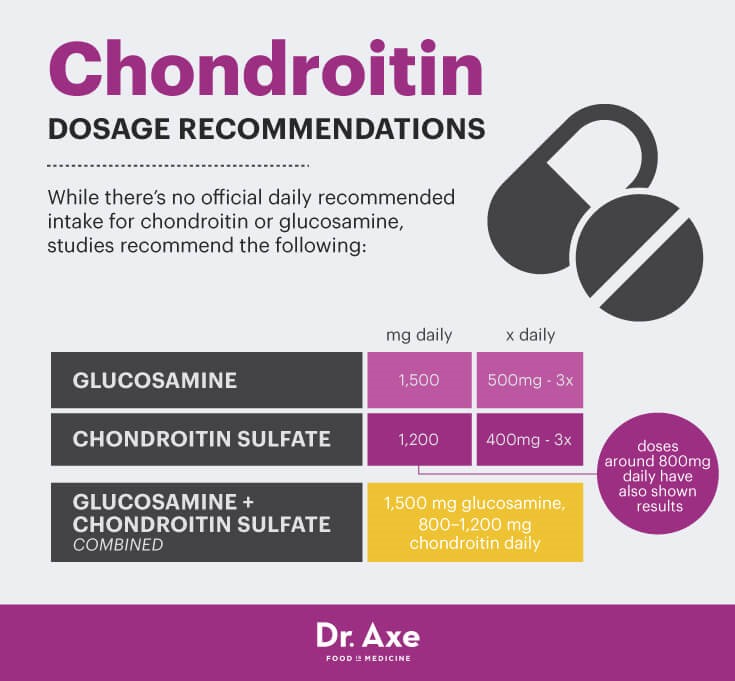 Bạn có thể uống thuốc qua đường miệng cho bệnh viêm xương khớp. Liều lượng nằm trong khoảng từ 200-400 mg, dùng 2-3 lần mỗi ngày hoặc 1000-1200 mg và chỉ uống một lần trong ngày. Bạn có thể kết hợp một số loại thuốc để dùng làm thuốc bôi lên da cho viêm xương khớp: bôi hỗn hợp này lên vùng khớp bị viêm trong 8 tuần. Liều dùng của chondroitin có thể khác nhau đối với những bệnh nhân khác nhau. Liều lượng dựa trên tuổi của bạn, tình trạng sức khỏe và một số vấn đề cần quan tâm khác. Chondroitin có thể không an toàn. Hãy thảo luận với thầy thuốc và bác sĩ của bạn để tìm ra liều dùng thích hợp.