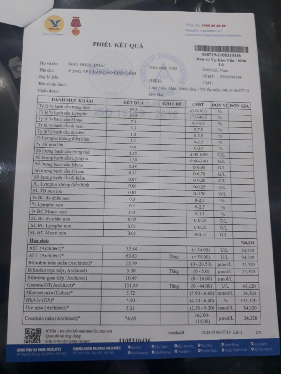 Kết qủa xét nghiệm của khác hàng trước khi dùng Funadin 1 tháng.