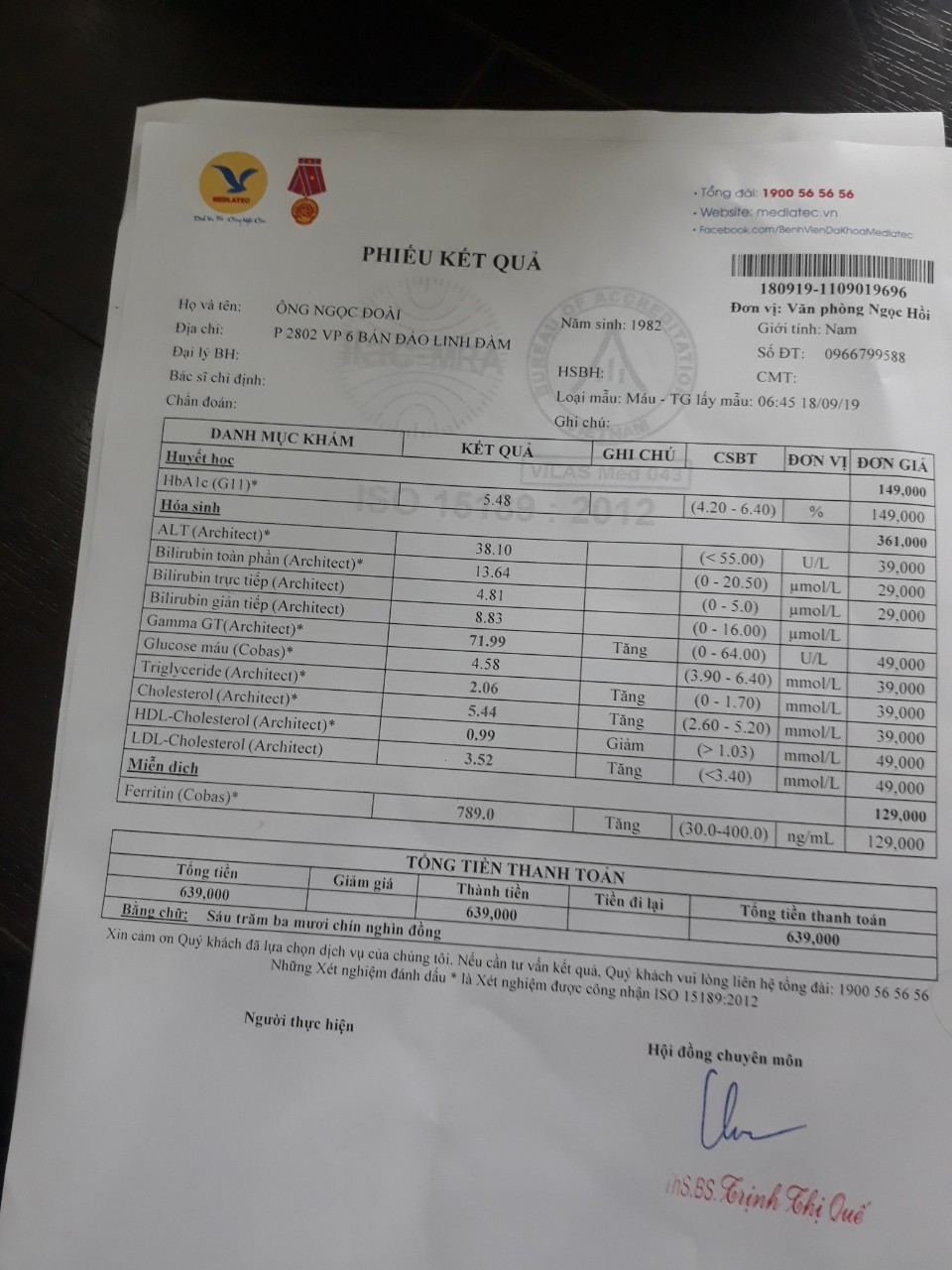 Gần như các chỉ số men gan gần như đã trở về ngưỡng bình thường (Chỉ số ALT, Bilirubin)