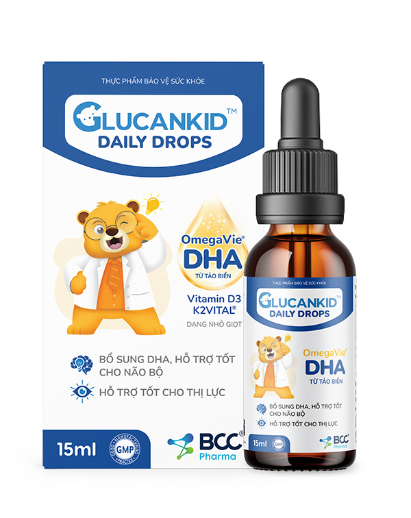 GLUCANKID DAILY DROPS – Giải pháp bổ sung DHA, Vitamin D3, K2 tiện lợi và an toàn cho trẻ nhỏ và cả gia đình.