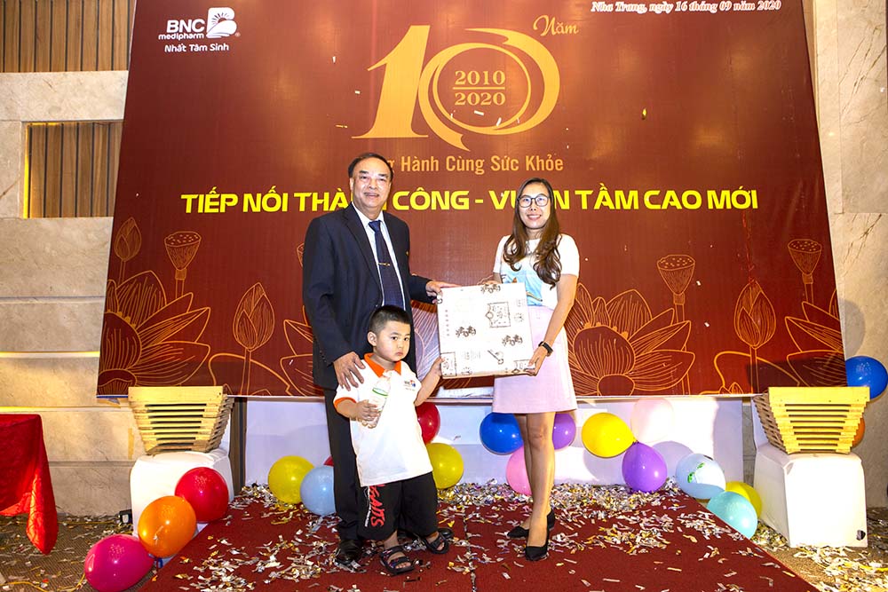 Để xây dựng BNC vững mạnh bền chặt lâu dài với thời gian thì không thể thiếu được những mầm non tương lai của đất nước – đó là những người sẽ kế tiếp và phát triển BNC-Medipharm . Chủ tịch tương lai của BNC – Medipharm – Bé Phan Đăng Minh (bé boong) và cùng tất cả các bé là thế hệ tương lai của BNC lên sân khấu nhận quà của Công ty dành cho các bé.