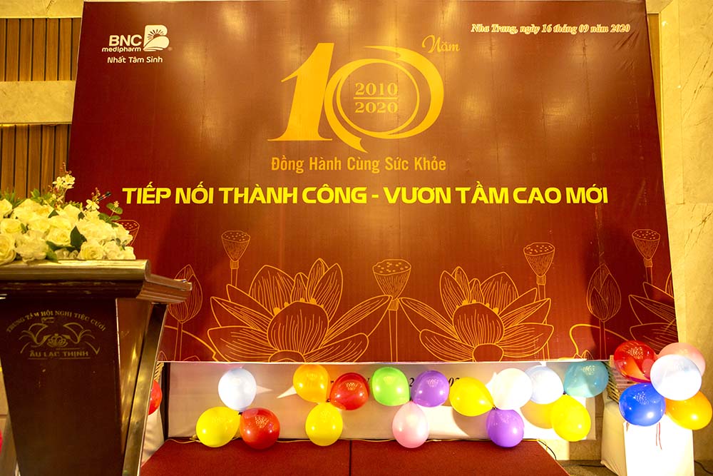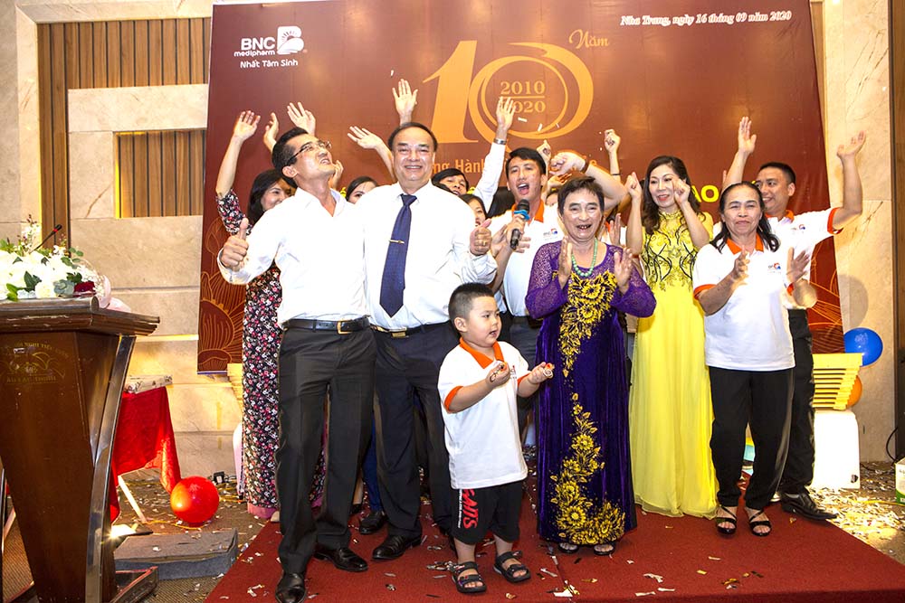 Trong buổi tối lung linh ở thành phố biển Nha Trang , tại nhà hàng Âu Lạc Thịnh – 75A, Nguyễn Thị Minh Khai, TP. Nha Trang, Công ty TNHH Thương Mại Dịch Vụ Y Tế Bình Nghĩa – BNCmedipharm đã tổ chức thành công chương trình Kỷ niệm 10 năm thành lập công ty (16/09/2010 – 16/09/2020), đánh dấu bước phát triển toàn diện của BNCmedipharm tới sức khỏe cộng đồng cũng như tri ân đến khách hàng đã và đang gắn bó với BNCmedipharm trong suốt thời gian vừa qua.