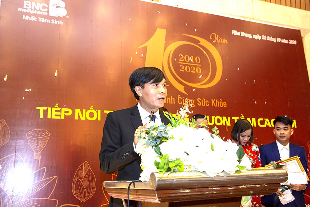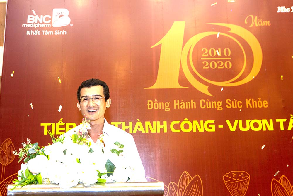Ông Phan Đăng Bình – Chủ tịch công ty BNC-Medipharm phát biểu quá trình thành lập, phát triển, gặt hái những thành quả đạt được của công ty trong 10 năm xây dựng và trưởng thành. Đây thực sự là những giây phút xúc động, đánh dấu bước phát triển của công ty BNCmedipharm.