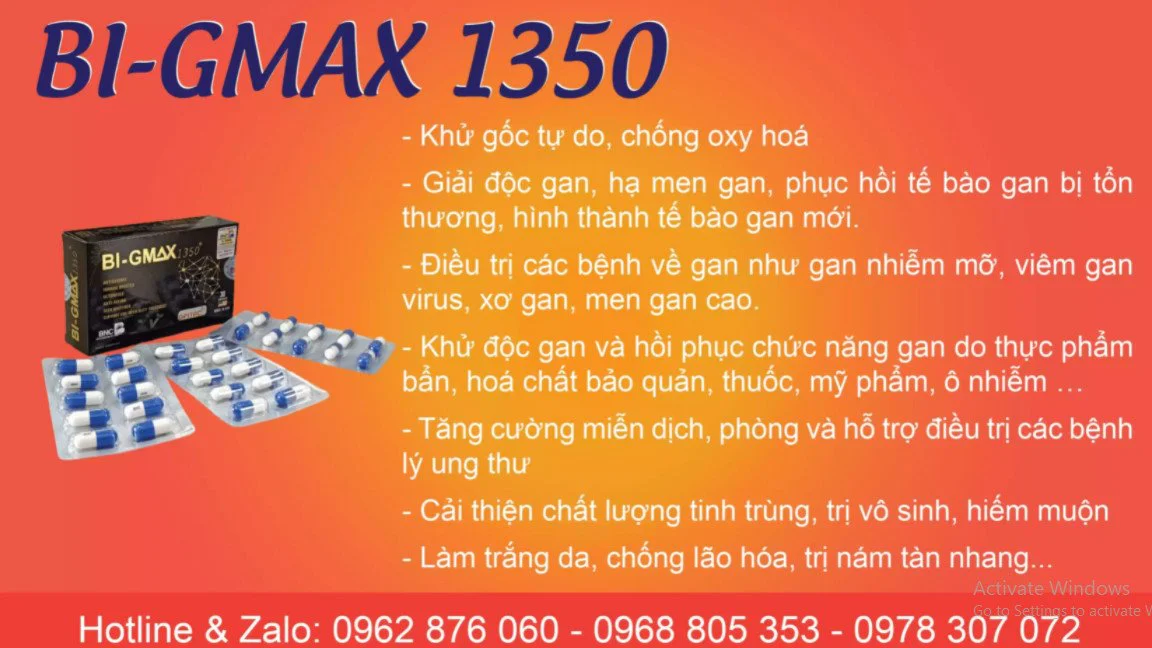 Bi-GMAX 1350 là công thức kết hợp cộng hưởng của các siêu cường chống oxy hóa và các gốc tự do chính của cơ thể giúp cơ thể dọn sạch các gốc tự do, sửa chữa các tổn thương tế bào cấp độ DNA, làm chậm quá trình lão hóa, tăng cường miễn dịch và bảo vệ cơ thể khoẻ mạnh.