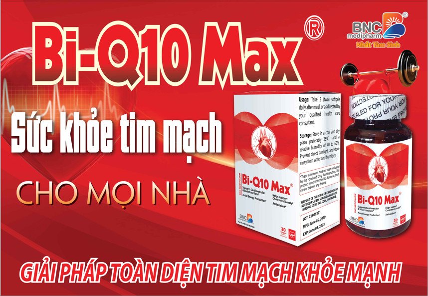 Bổ sung Bi-Q10 MAX hàng ngày giúp tim và hệ thống mạch khỏe mạnh. Giúp điều trị các cơn đau thắt ngực, thiếu máu, nhồi máu cơ tim, hỗ trợ phòng và chống các cơn đột quỵ, tai biến mạch máu não. Bi-Q10 Max là một sản phẩm đáp ứng được nhu cầu cấp thiết trong công tác phòng chống, nâng cao sức khỏe tim mạch và chữa trị các bệnh lý tim mạch ngày càng gia tăng. Bi-Q10 Max là công thức phối hợp giữa các dược chất đặc biệt có hoạt tính sinh học tốt nhất để tăng cường sức khoẻ tim mạch đã được đăng ký bản quyền về thương hiệu giữa các nhà khoa học của hãng dược phẩm CAPTEK SOFTGEL International, Inc, Hoa Kỳ và nhà phân phối BNC Medipharm.