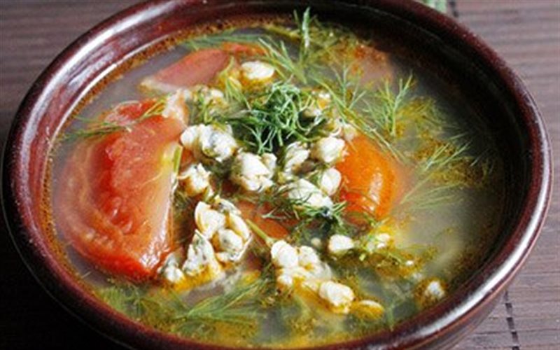 Nguyên liệu: Hến 300g, hẹ 50g, rau dăm (50g), cà chua ( 2 quả), gia vị (mắm, muối, đường),1 củ hành khô, 1 nửa quả dứa.