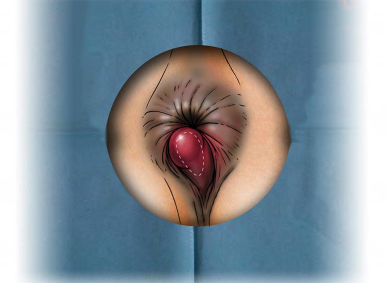 + Nhìn và sờ thấy có một hoặc nhiều cục u bất thường nổi quanh hậu môn.