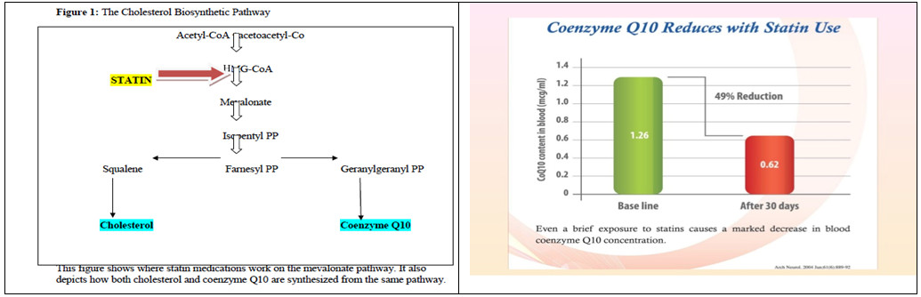 - Statin là thuốc điều trị giảm Cholesterole thường được kê đơn trong các bệnh nhân bị bệnh cao mỡ máu, huyết áp và xơ vữa động mạch, nhưng Statin cũng là thuốc làm giảm hàm lượng Co-Q10 nội sinh của cơ thê theo cơ chế sau: