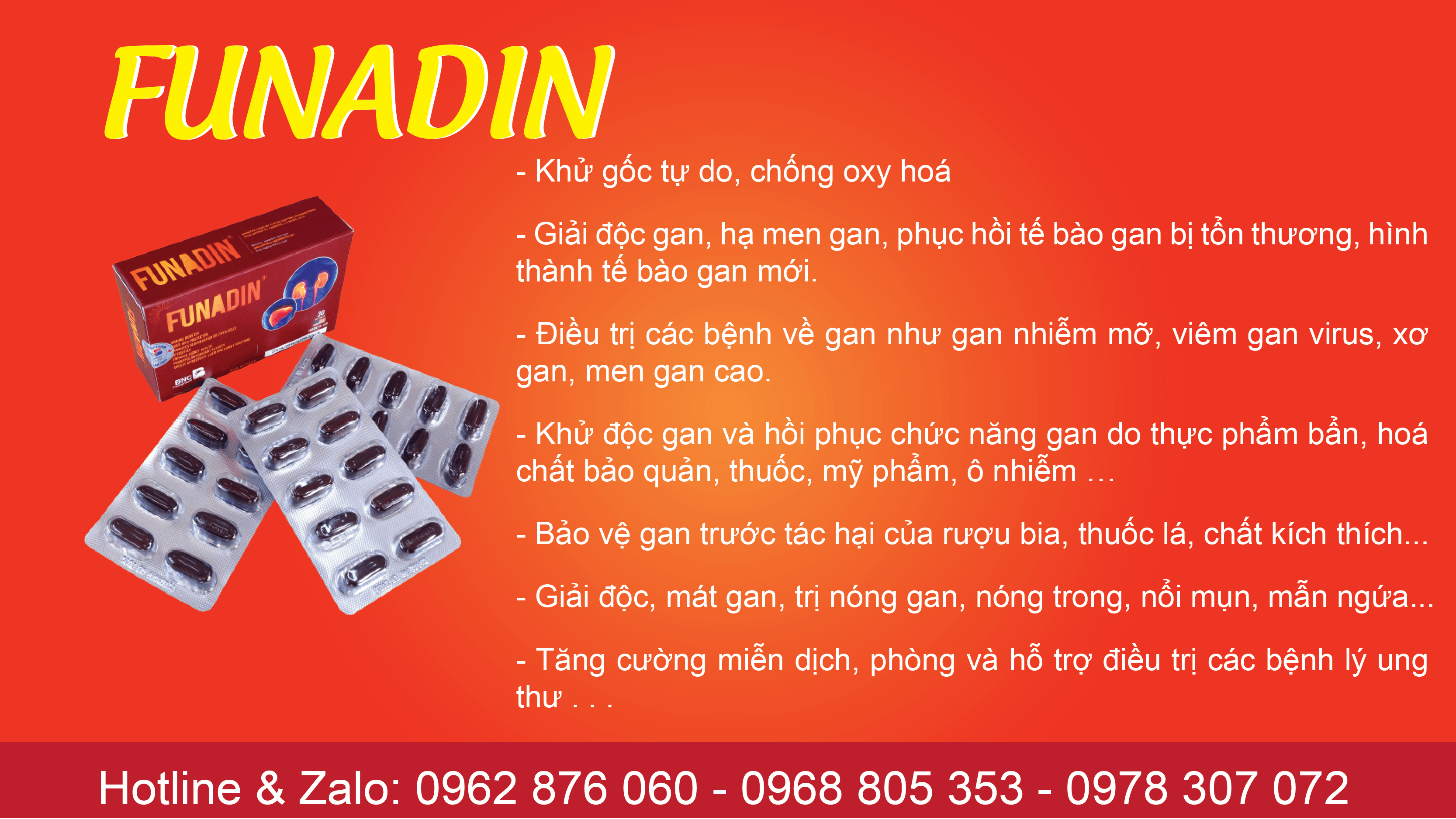 Funadin - Tăng cường khả năng giải độc, bảo vệ gan trước các tác nhân gây hại (gốc tự do, thuốc bảo vệ thực vật tồn lưu trong rau quả, thực phẩm, thuốc điều trị bệnh)